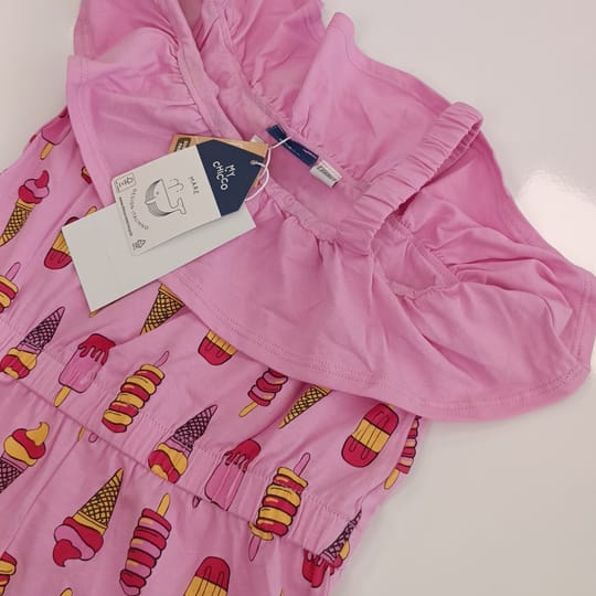 Очарователен и удобен гащеризон от марката Chicco е чудесен избор за топлите дни. Изработен от мек и еластичен материал, който осигурява комфорт, свобода на движение и приятно усещане върху кожата.