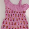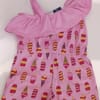Модел без ръкави с еластични презрамки и странични джобове за практичност. Горната част е декорирана със сладки волани, които добавят нежност и игривост към визията. Перфектен за разходки, игри или летни събития. Състав: 95% памук, 5% еластан Мека и приятна на допир материя Еластични презрамки Деколтето е украсено с волани.
