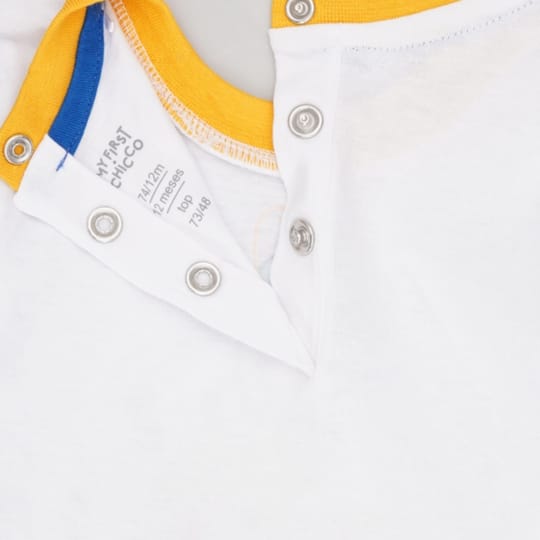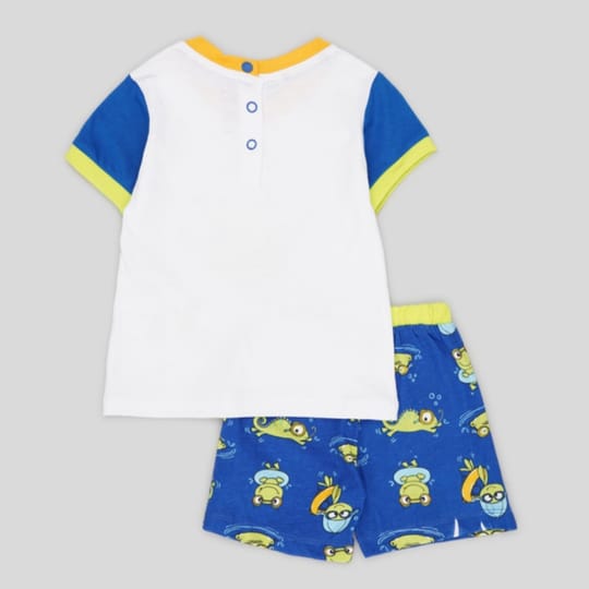 Състав: 100% памук Мека и приятна на допир материя Тениска: кръгло деколте, къс ръкав, закопчава се с копчета на гърба Шорти с еластична талия за удобно прилягане .