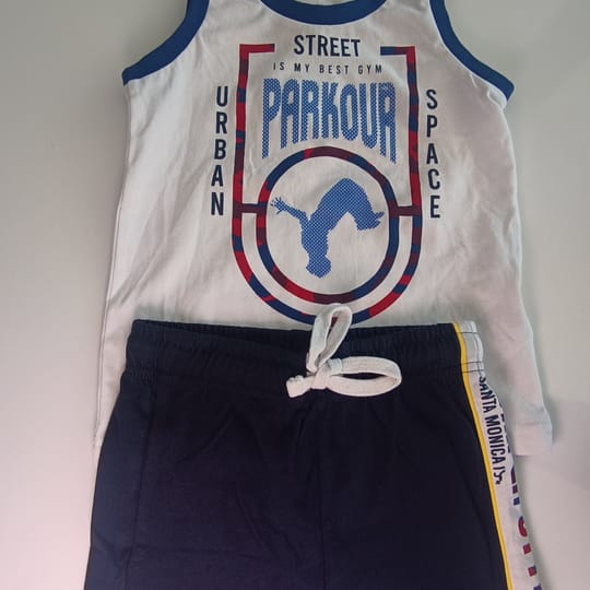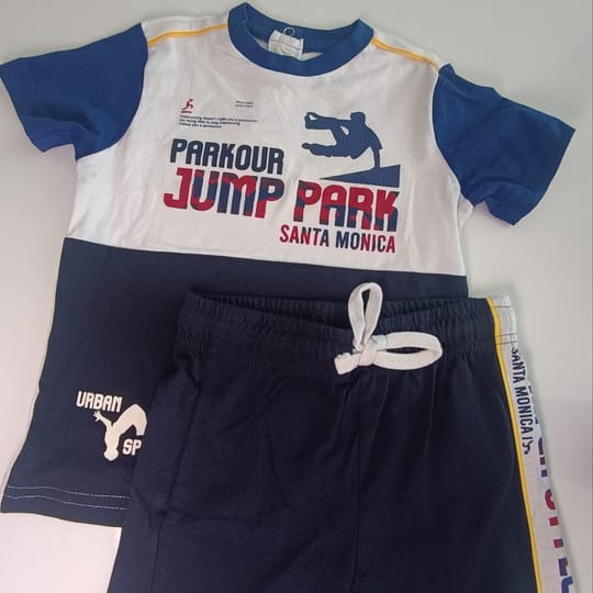 Удобната кройка на тениската е идеална за активни игри и разходки, докато шортите с ластик на талията осигуряват свобода на движение и комфорт. Този комплект ще бъде отличен избор за ежедневно носене през топлия сезон.