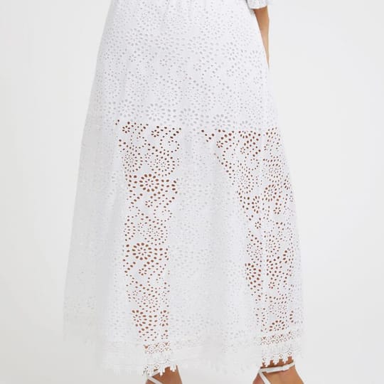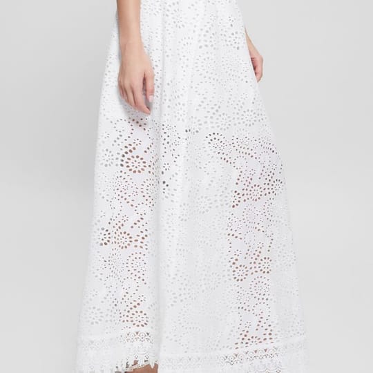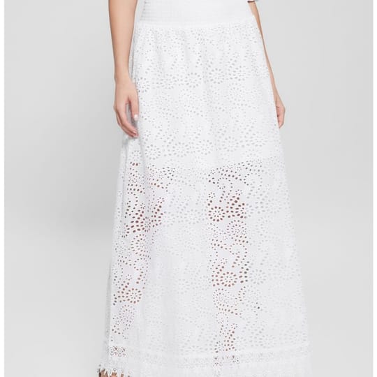 Дълга бяла пола, бродерия, с къса подплата